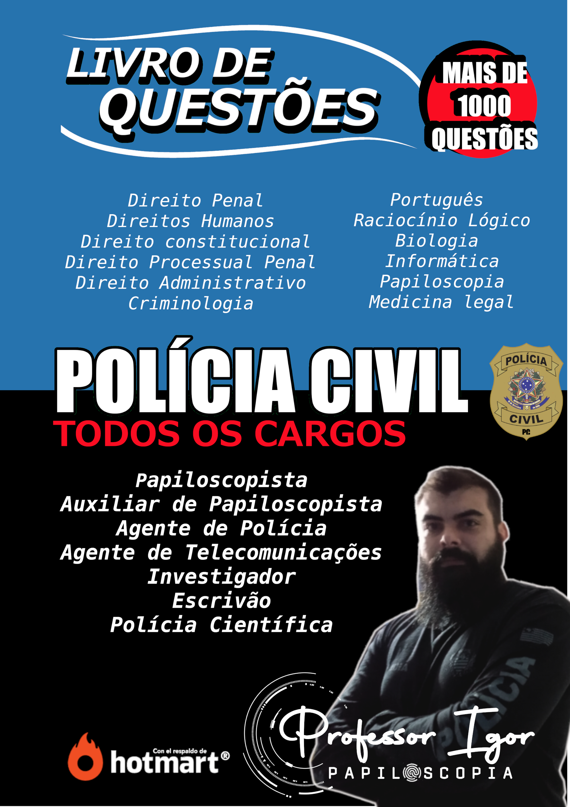 Se você quer garantir a sua aprovação no concurso da POLÍCIA CIVIL, não pode deixar de conhecer a apostila de QUESTÕES! Ela traz uma seleção completa e atualizada das melhores questões de concursos públicos anteriores, abrangendo as disciplinas de: